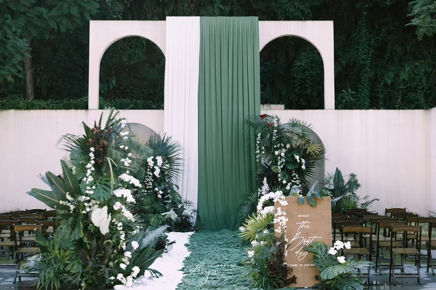 手机实拍|金海棠泳池户外婚礼
